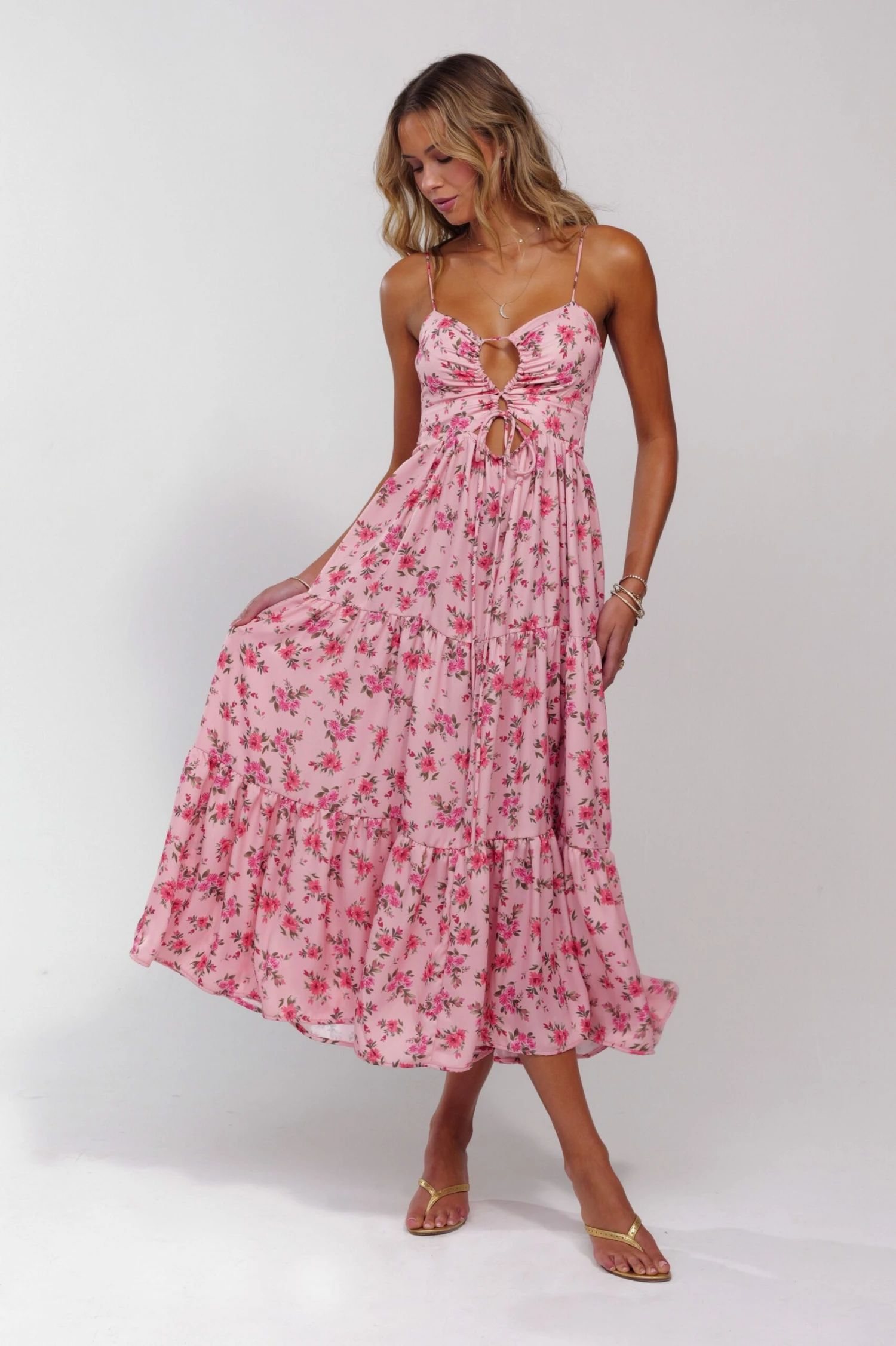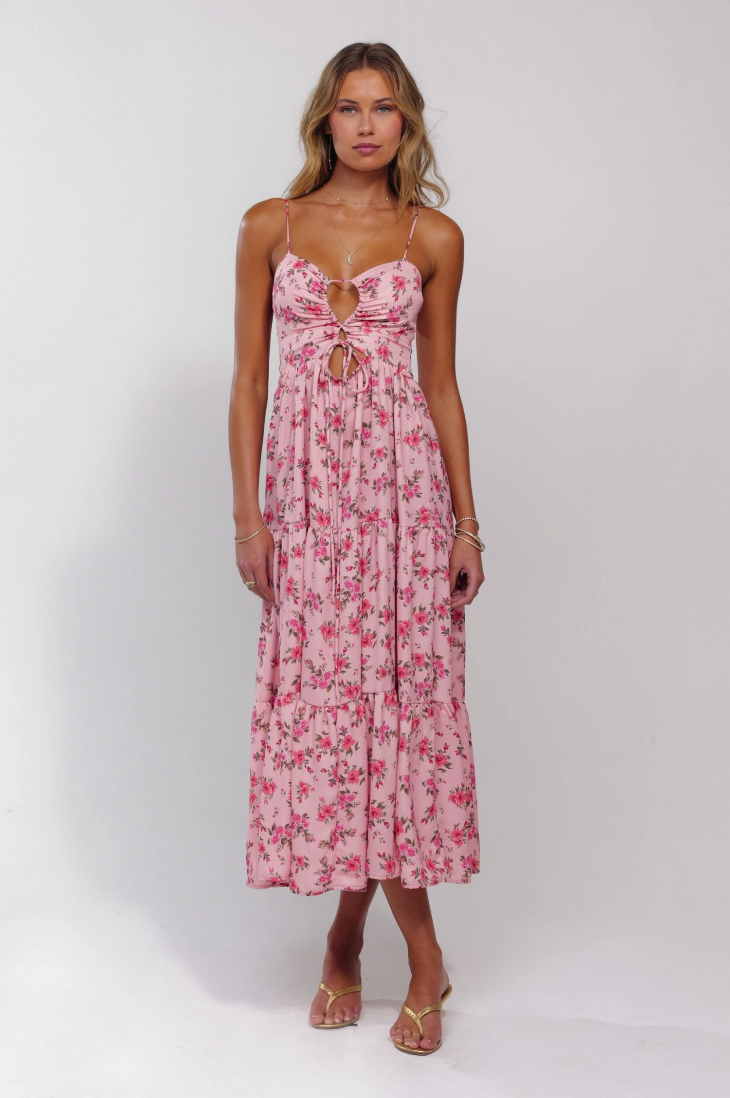 Introducing the Ariel Midi, a tiered dress with cut-out and tie front details. This elegant piece exudes exclusivity with its sophisticated design, perfect for any summer soirée. Make a fashion statement with this luxurious dress that combines artistry and style.