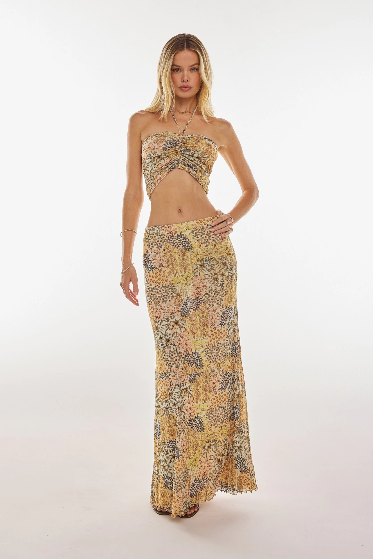 Create a look for each wear with this versatile, mesh piece: an adjustable tie shirring and option to wear as a halter or strapless top. Make it your own!Â