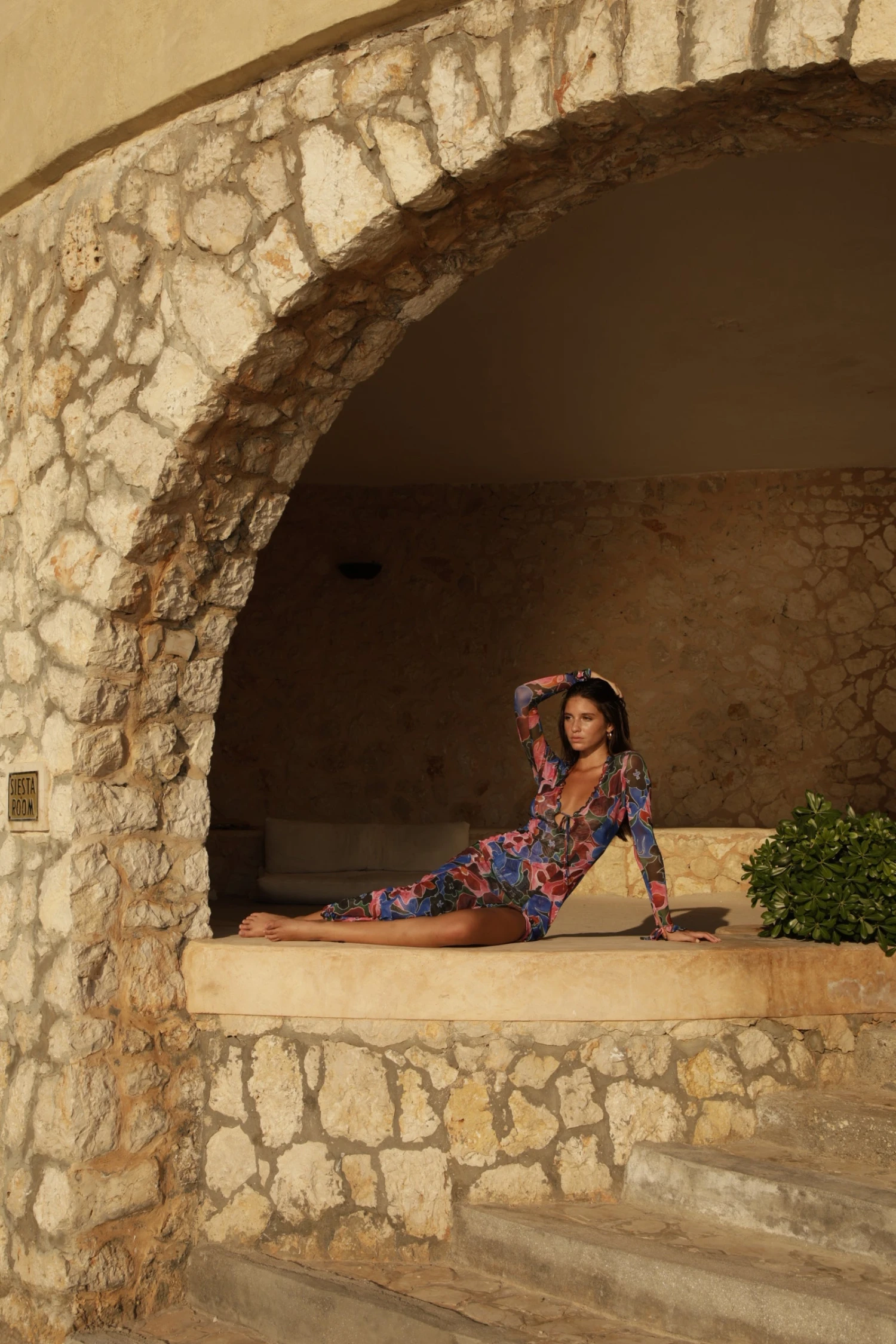 - Plunge neck line dress with spaghetti tie closure