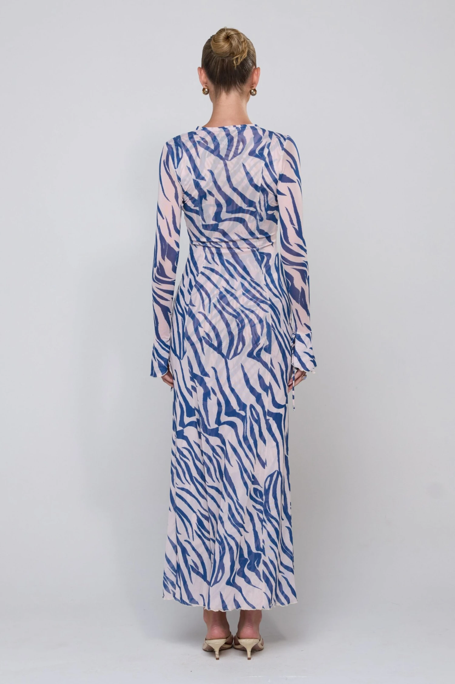 The Lennon Maxi in features a drop neckline and tie detail, front slit, and bell sleeves. Elevate your style with this elegant and sophisticated design, perfect for any occasion.