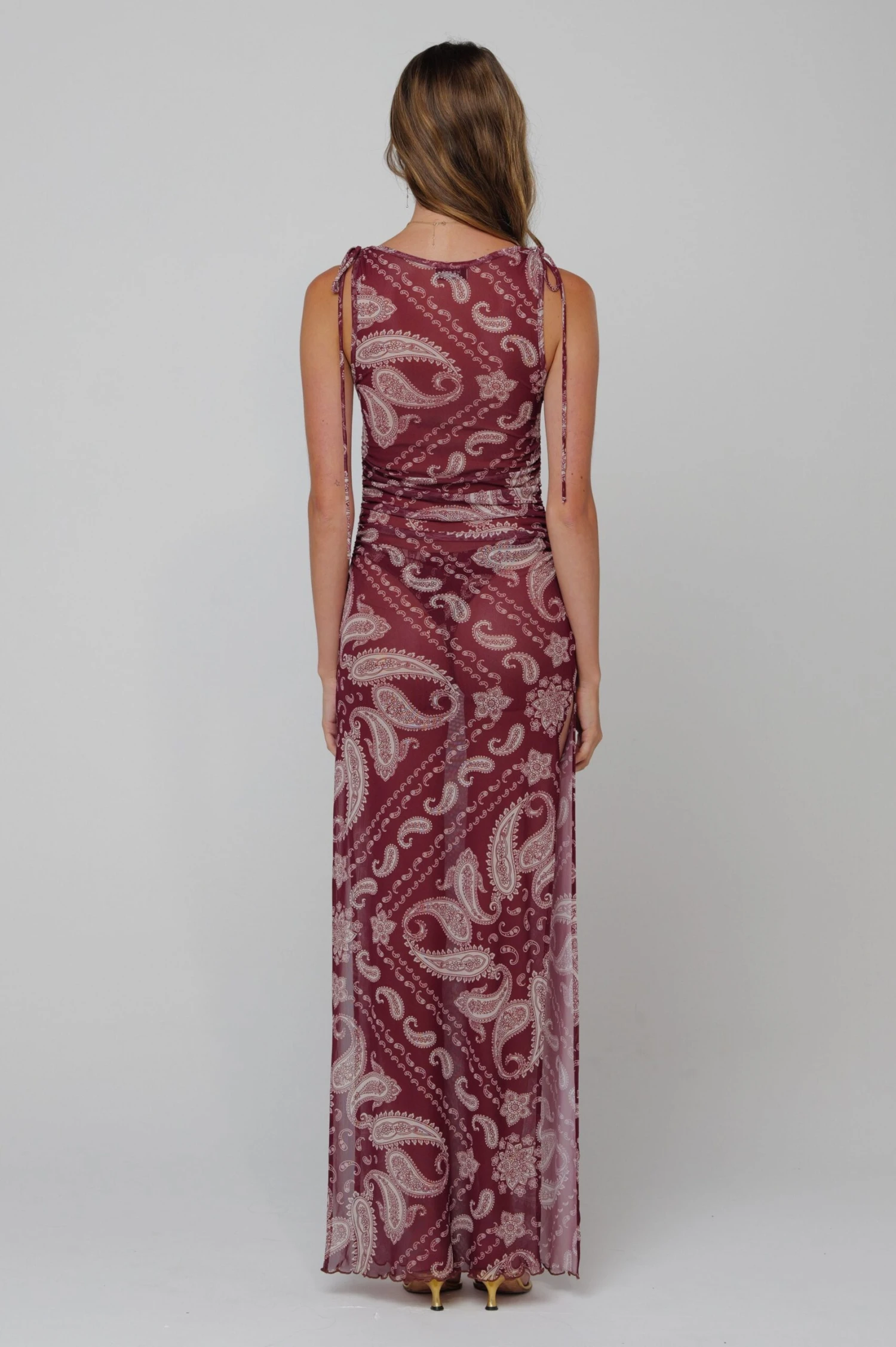 The Paige Dress in Bronco is a must-have for any fashion-forward individual. With slit sides and a sheer design, this dress offers both style and functionality. Show off your confident and flirty side in this versatile, on-trend dress.