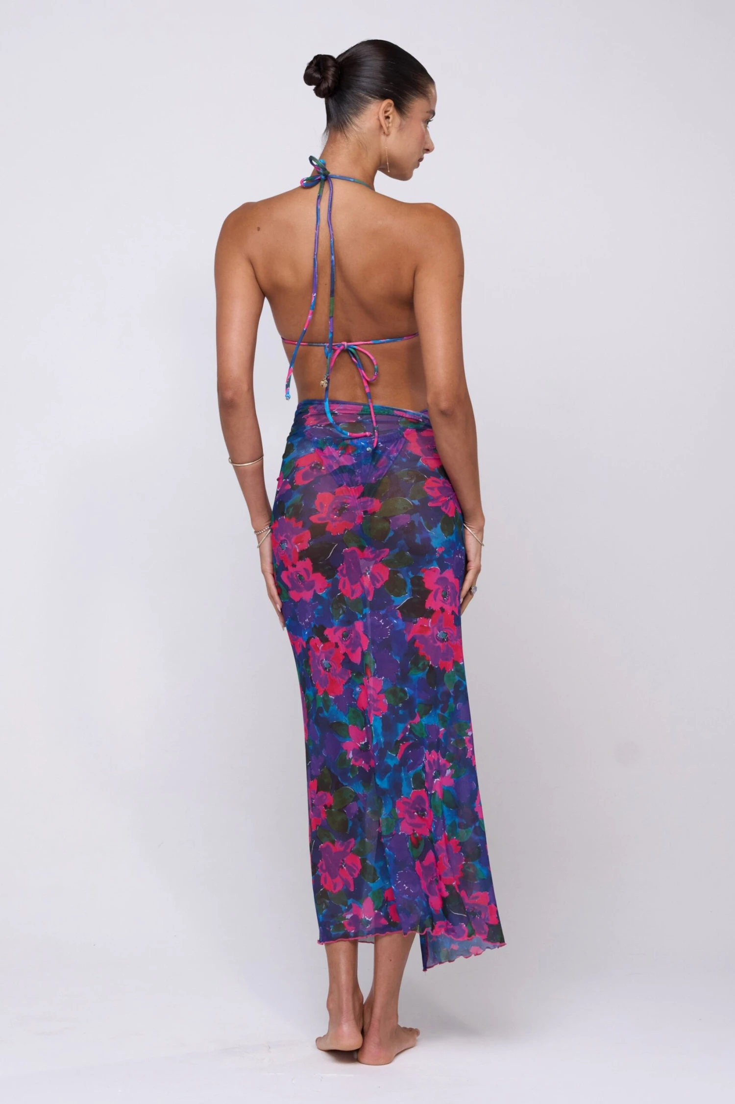 Transform your beach look with our Perfect Scarf Top and Sarong. This multifunctional piece effortlessly doubles as a chic scarf top and a stylish coverup sarong. From poolside to dinner, this versatile item will elevate your vacation wardrobe with its elegance and luxury.