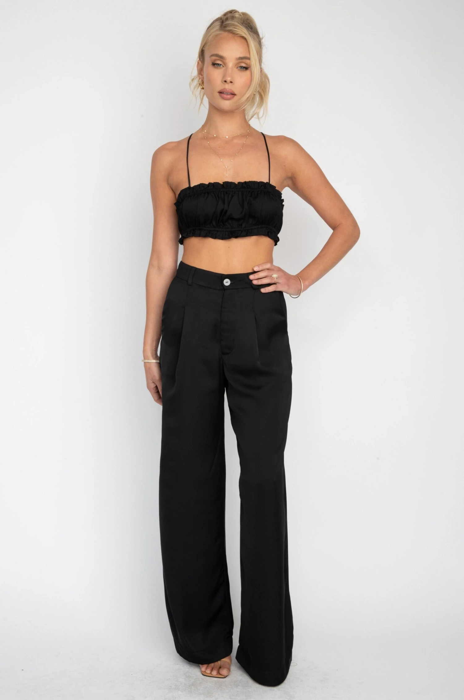 NOTE: There is no stretch in these pants. Measurements hit at a high waist and are as follows: