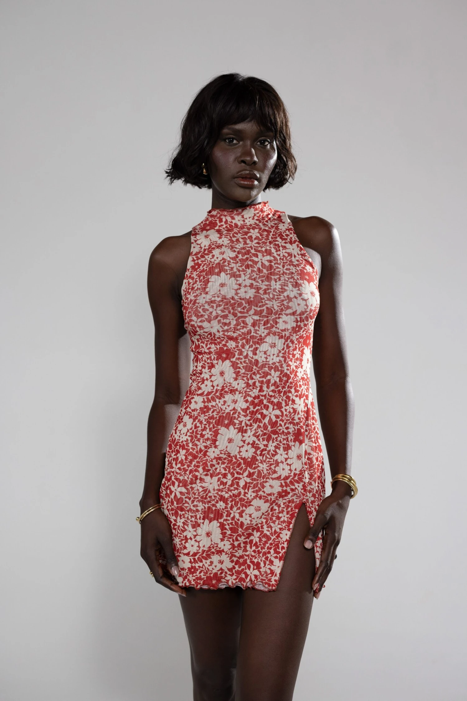 Get ready to turn heads in the Savannah Mini! This playful mock neck sleeveless dress is perfect for any occasion. With a flirty slit, this mini dress adds just the right amount of sass to your outfit. So go ahead, make a statement and have a little fun!