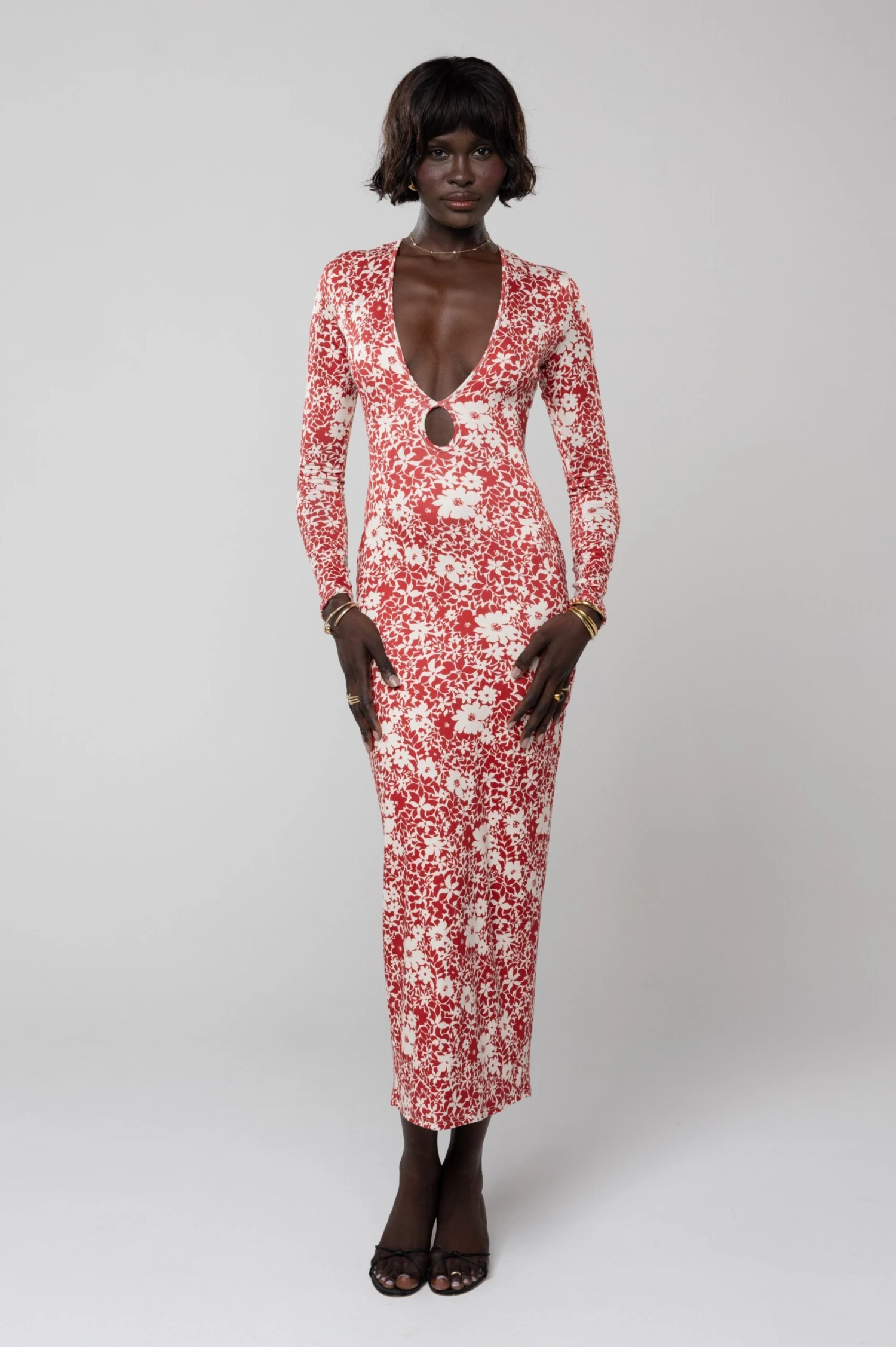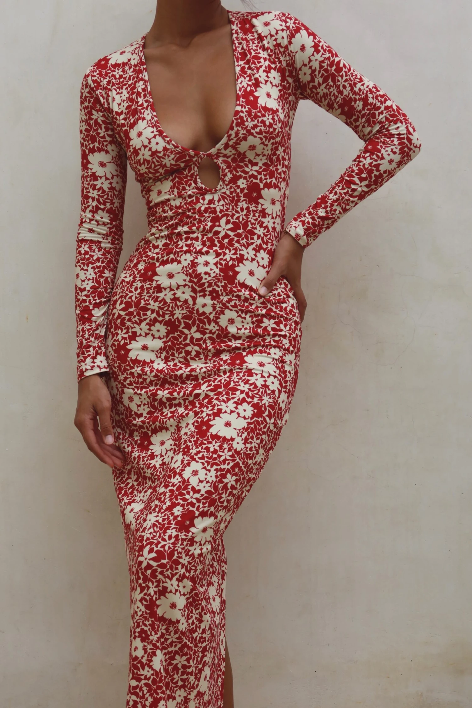 - Deep v neckline with keyhole