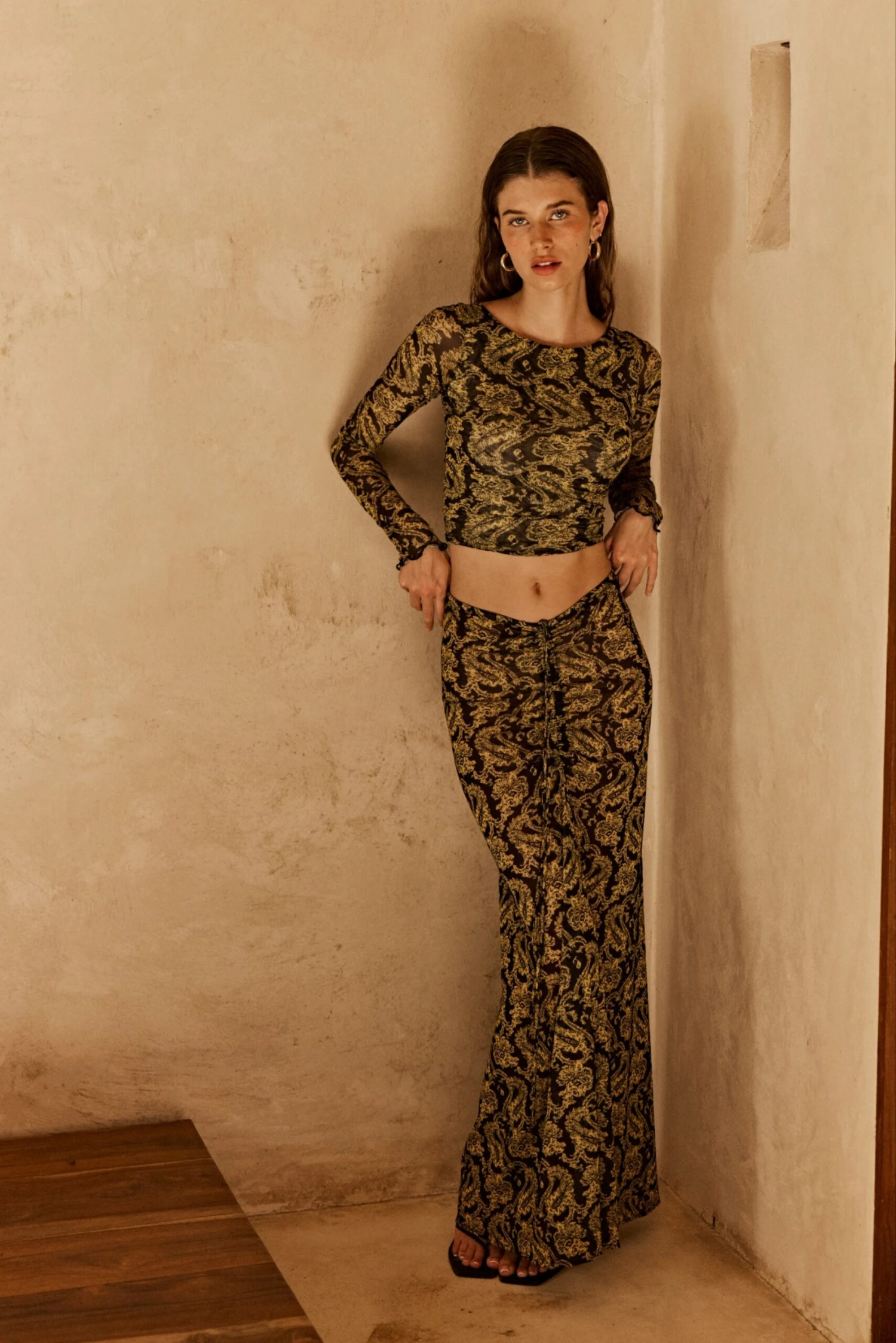 Introducing the Ziggy Mesh Skirt, a shirred front maxi skirt with an elastic waist for a flattering fit. Effortlessly transition from day to night with this versatile and comfortable piece. Crafted with precision and expertise, the skirt offers an elegant and sophisticated look.